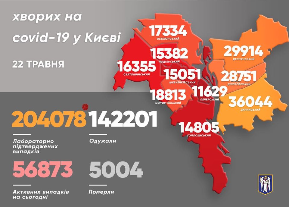 По состоянию на утро субботы, 22 мая, количество зараженных коронавирусом в Киеве увеличилось на 298 человек.